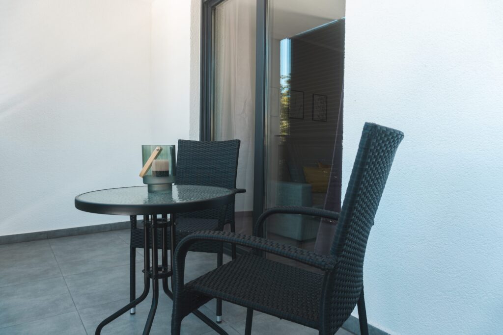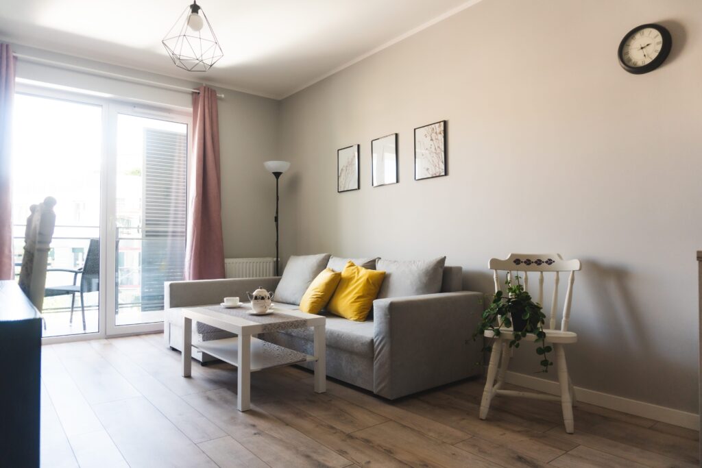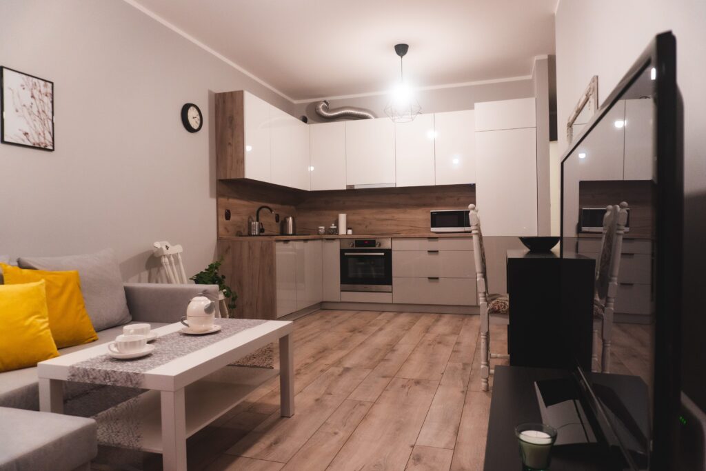 W skład apartamentów wchodzą: salon z aneksem kuchennym, oddzielna sypialnia, łazienka, taras oraz bezpłatny prywatny, podziemny parking.